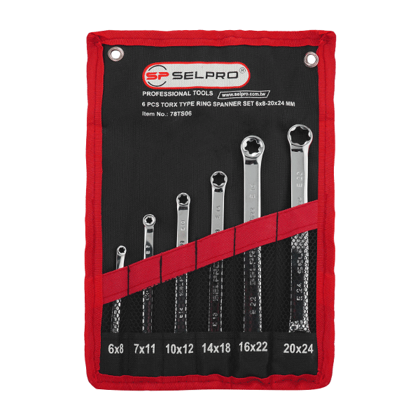 مجموعه شش عددی از آچار های E یا ستارهای از سایز E6 تا E24 ساخته شده از فولاد کروم وانادیوم مطابق با استاندارد DIN کشور آلمان است .